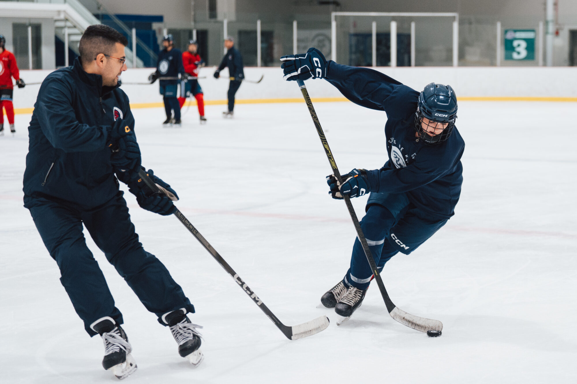 - Le développement des habiletés techniques individuelles (maniement, tirs, patinage)